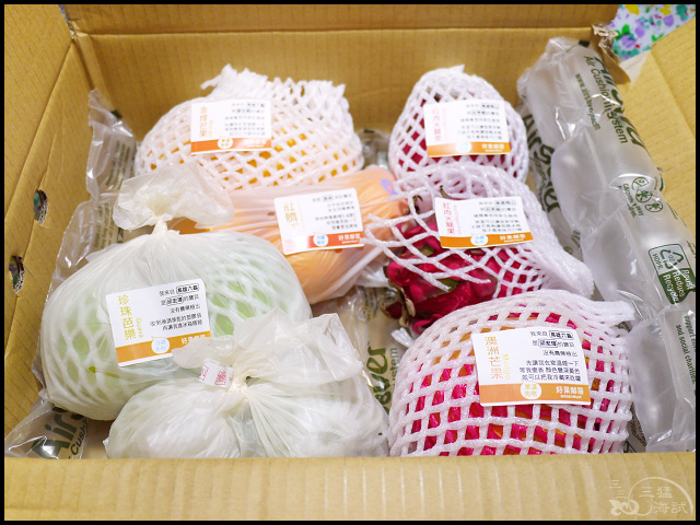 這次我選了珍珠芭樂、紅心芭樂、紅肉火龍果、金煌芒果、澳洲芒果、臍橙,