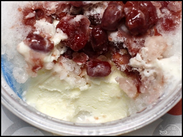 把紅豆醬、冰淇淋、脆冰,三種不同美味喇喇咧一起吃,